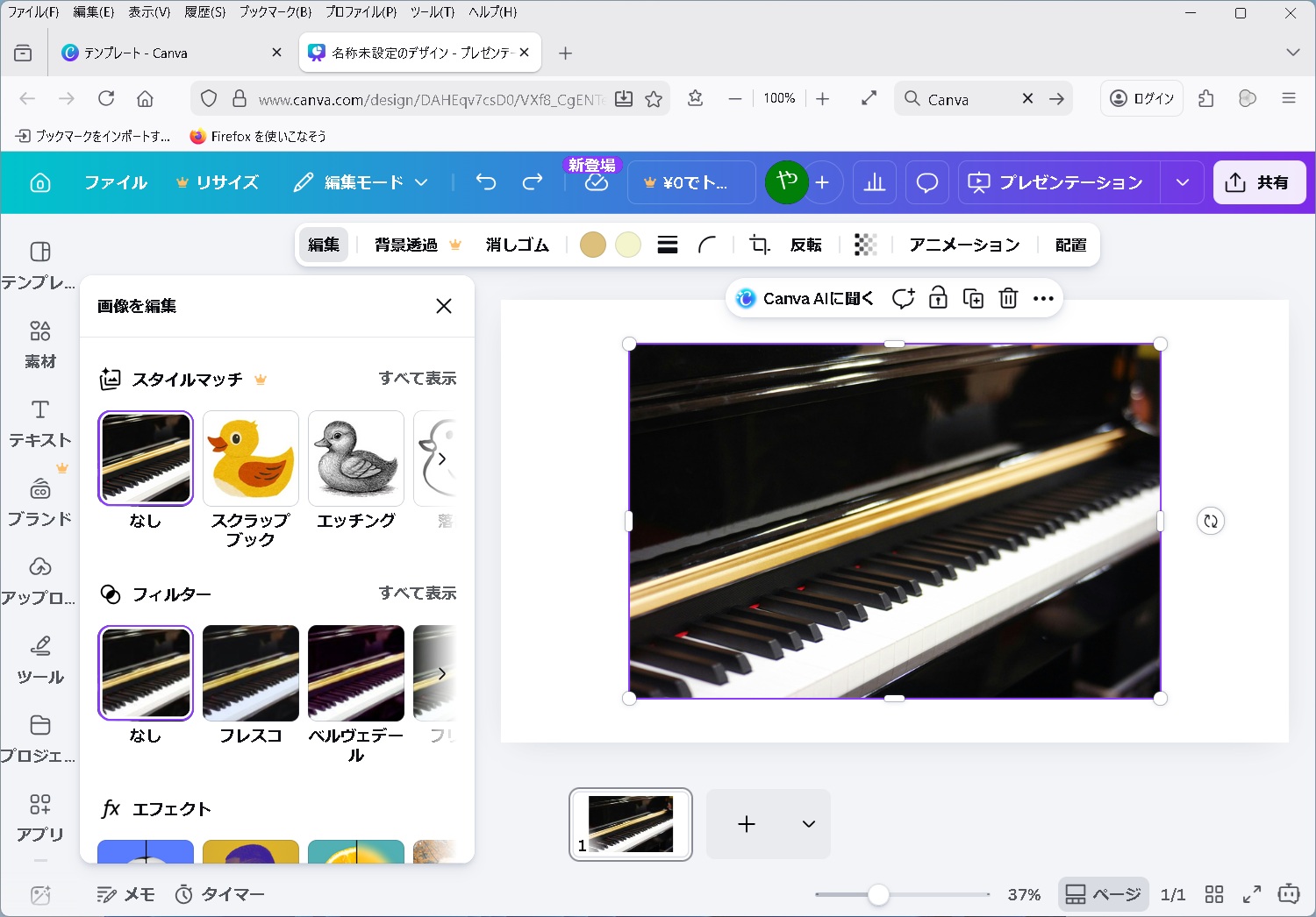 Canva にログインして、写真を選択して、編集をクリック。