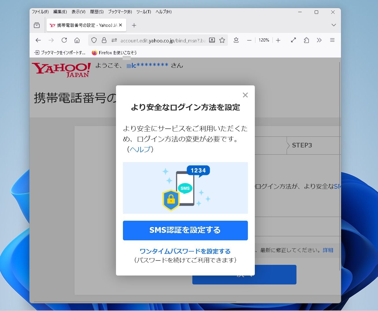 「SMS認証」を設定しないとログインできなくなったので、